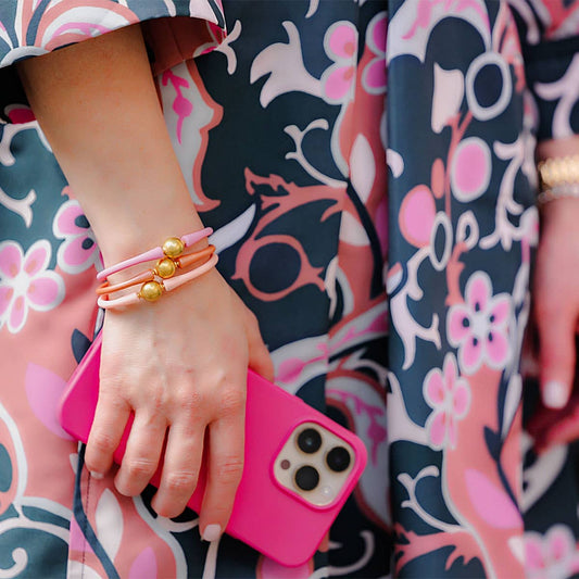 Canvas Style Bali 24K Gold Plated Ball Bead Silicone Bracelet: Eggnog